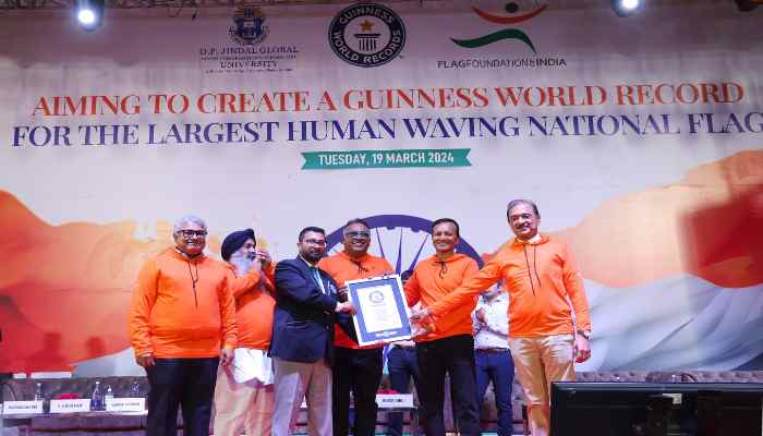 ओ.पी. जिंदल ग्लोबल यूनिवर्सिटी और फ्लैग फाउंडेशन ऑफ इंडिया ने सबसे बड़े मानव राष्ट्रीय ध्वज लहराने का नया गिनीज वर्ल्ड रिकॉर्ड बनाया